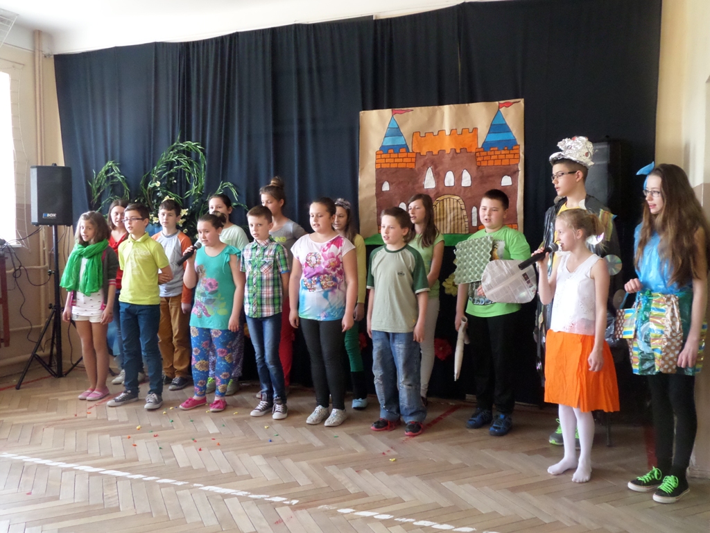 24 kwietnia 2015 roku w naszej szkole obchodziliśmy Światowy Dzień Ziemi. Klasa III przygotowała przedstawienie teatralne pt: ,,Królewna Śmieszka i Ekoludki" oraz zaśpiewała piosenki ekologiczne. Do obchodów Dni Ziemi włączyły się wokalnie również klasy „0”. Na akademii przy dźwiękach Piotra Czajkowskiego „Dziadek do orzechów” mogliśmy zobaczyć widowisko baletowe w wykonaniu dziewcząt klas starszych. Zaprezentowały w zwiewnych strojach taneczną opowieść „Taniec kwiatów” oraz piosenkę „Kapelusze pełne płatków”. Uczniowie klasy VI – Natalia Florek, Sylwek Szalast, Hubert Wójcik oraz Zuzia Kopyść wykonali stroje ekologiczne, w których przedstawili nowe trendy w modzie. Po występach uczniowie klas starszych podsumowali nasze spotkanie piosenką ekologiczną „Jesteśmy dziećmi ziemi”.