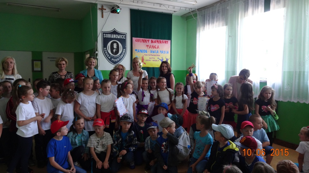 Dnia 10 czerwca w SP w Sobianowicach odbył się gminny konkurs tańca współczesnego "Taniec - moja pasja". Na konkurs zjechali miłośnicy tańca z kla. 0 - VI z terenu całej gminy. Zmagania odbywały się w kategoriach solistów i zespołów tanecznych. Miło nam poinformować, że zespół uczniów z kl. II zachwycił jury, widownię i zdobył
