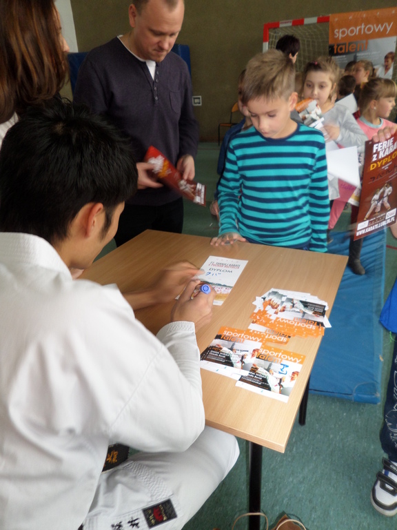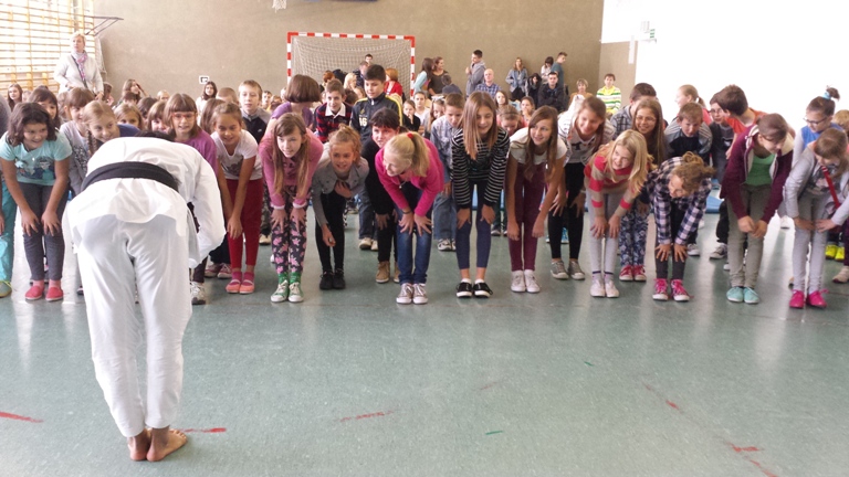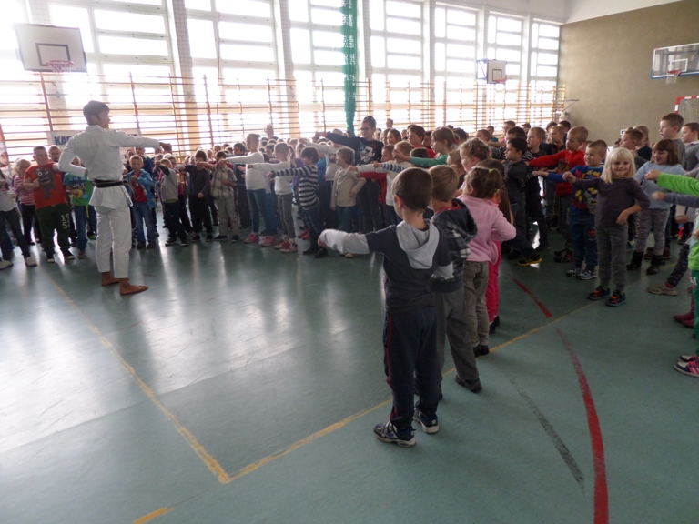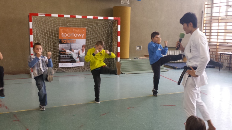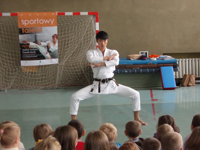 Pokaz od strony teoretycznej prowadził p.Andrzej Maciejewski instruktor karate,pomysłodawca i realizator ogólnopolskiego programu szkoleniowego wspierającego rozwój najmłodszych adeptów karate " Sportowy Talent", a od strony praktycznej w pokazie uczestniczył Taiga Horii instruktor karate z Japonii.