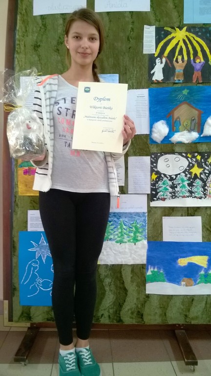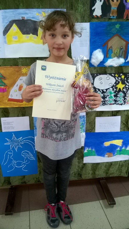 W Międzyszkolnym Konkursie Literacko-Plastycznym "Malowane skrzydłem anioła" organizowanym przez Gimnazjum im.płk.pilota W. Kolaczkowskiego w Pliszczynie nasze uczennice zaprezentowały przepiękne prace za które otrzymały: