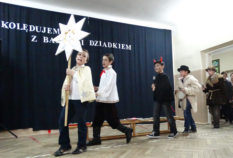 22 stycznia odbyło się w naszej szkole wspólne kolędowanie połączone z Dniem Babci i Dziadka. Po powitaniu przybyłych Gości przez p. Dyrektor, głos zabrał wójt gminy Wólka- p. Edwin Gortat. Na początku klasy Ia, Ib i klasa II zaśpiewały piosenki dla Babci i Dziadka. W dalszej części wystąpił nasz zespół ludowy ,,Łuszczowiacy”, zarówno grupa młodsza jak i starsza. Następnie każda klasa wykonała kolędę. Na zakończenie dzieci ze świetlicy szkolnej wystąpiły w Jasełkach Bożonarodzeniowych. Po części artystycznej był czas na pogawędki przy kawie i pysznym cieście. Dziękujemy Babciom i Dziadkom za tak liczne przybycie