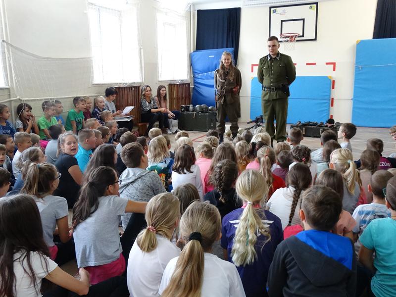 1 października naszą szkołę odwiedziła grupa artystyczna Rekonstrukto, która z okazji 80-tej rocznicy wybuchu wojny światowej, przygotowała pokaz historyczny przybliżający odbiorcom losy państwa, narodu i żołnierza polskiego z kresu II Rzeczypospolitej.