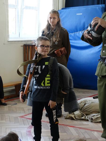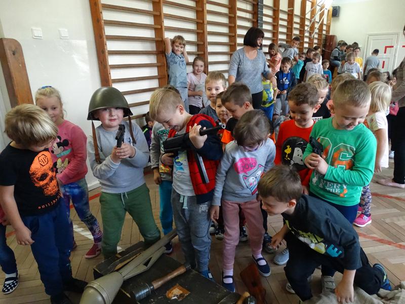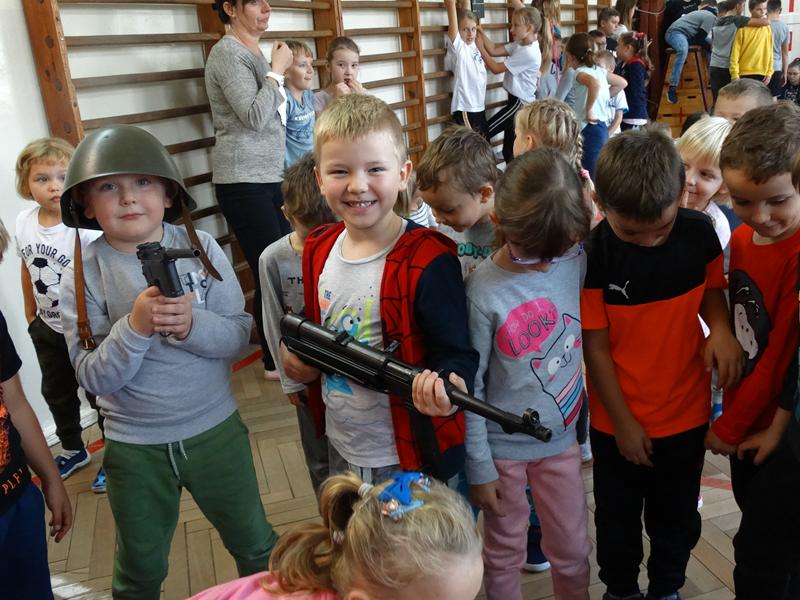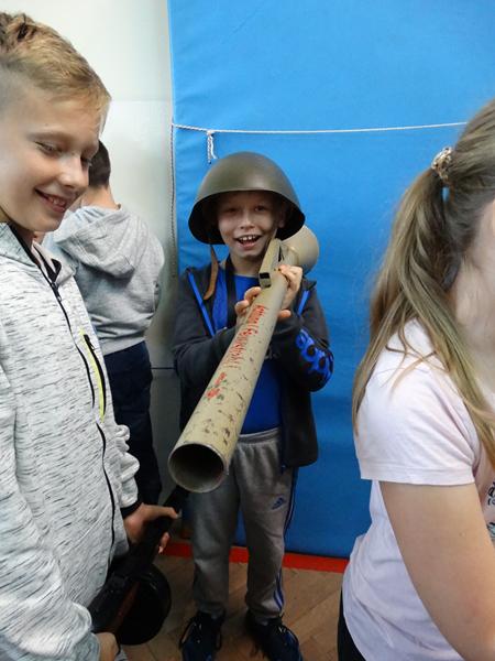 Na zakończenie uczniowie obejrzeli bogatą kolekcję replik broni używanych przez żołnierzy uczestniczących w walkach zbrojnych.