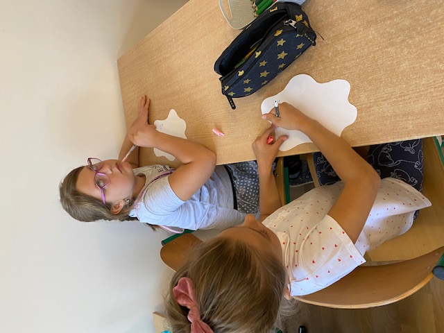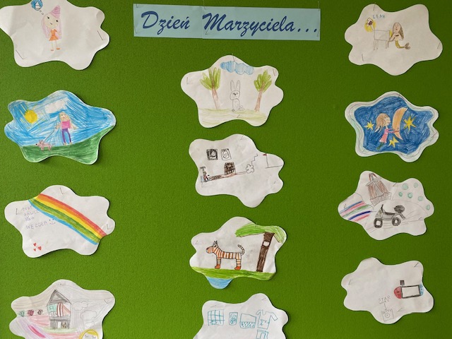 8 września obchodziliśmy w świetlicy Dzień Marzyciela. Dzieci wysłuchały wiersza Juliana Tuwima „Dyzio marzyciel” i rozmawiały o słodkich fantazjach chłopca. Potem każdy próbował odpowiedzieć na trzy pytania: Jakie jest Twoje największe marzenie? O czym marzysz dla swojej rodziny? Jakie marzenia może mieć nasz świat? Na koniec zajęć dzieci wykonały prace plastyczne rysując na chmurce swoje najszczersze pragnienia. Oby się spełniły…