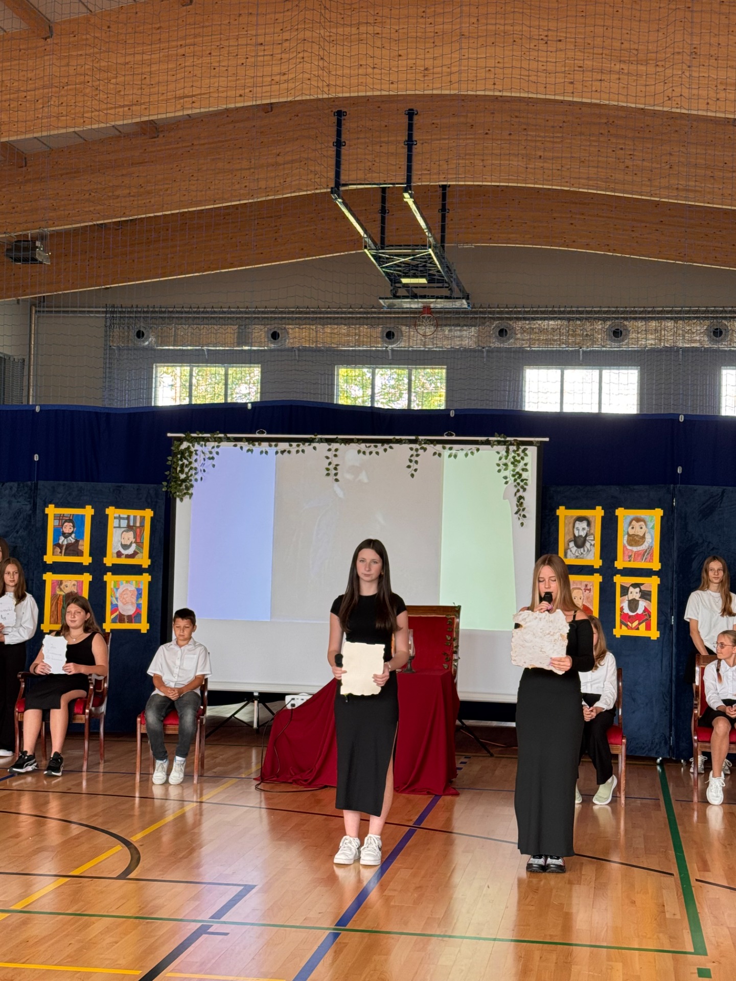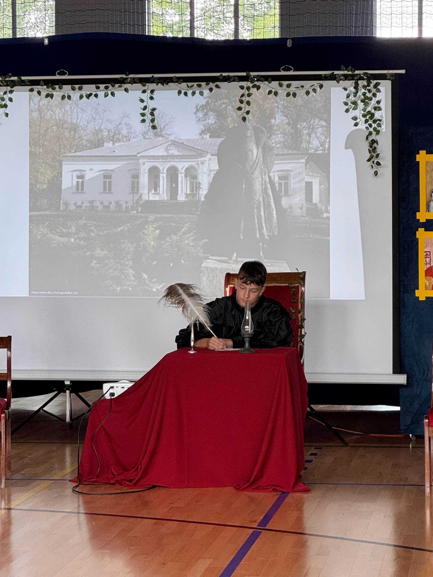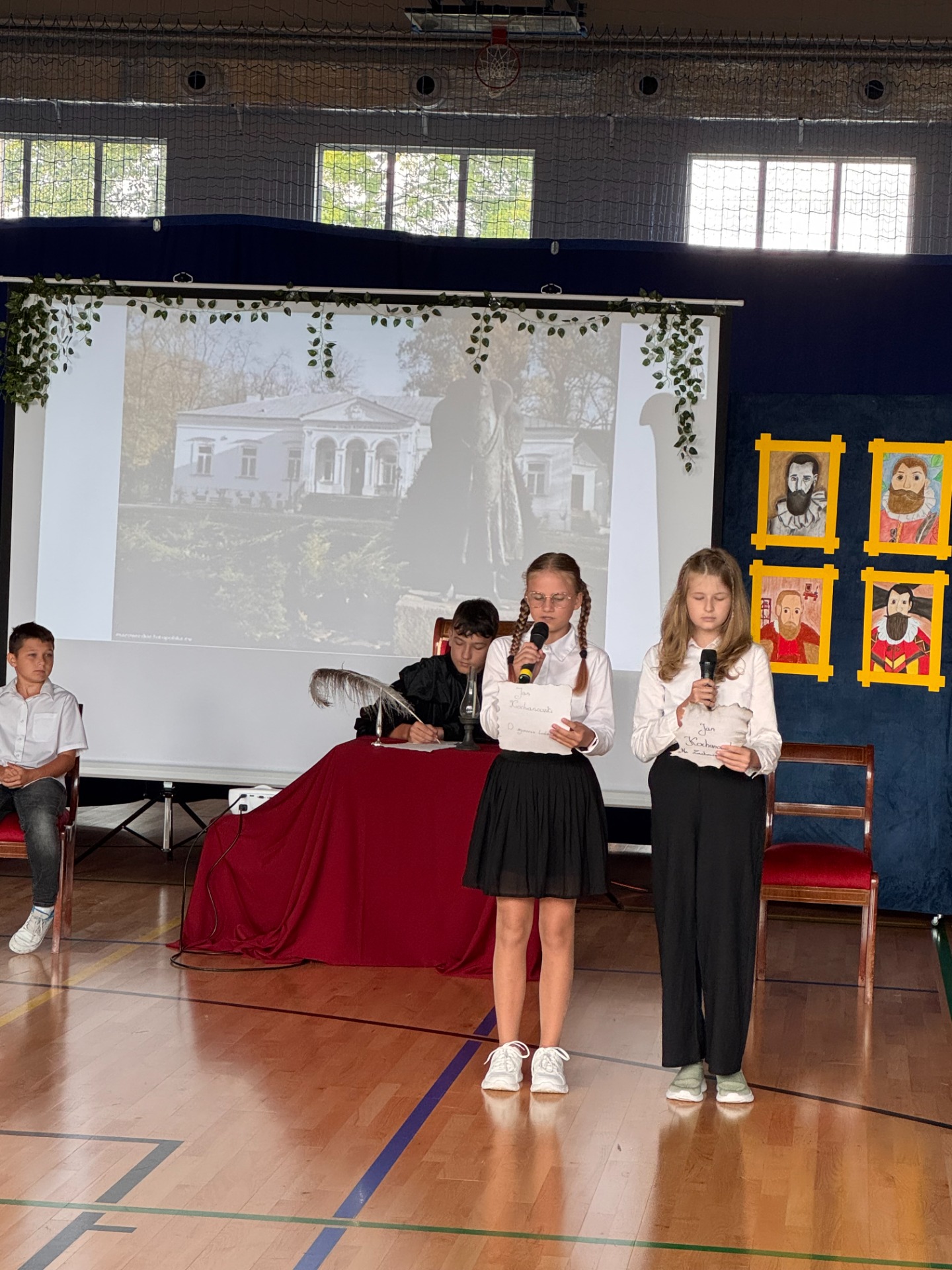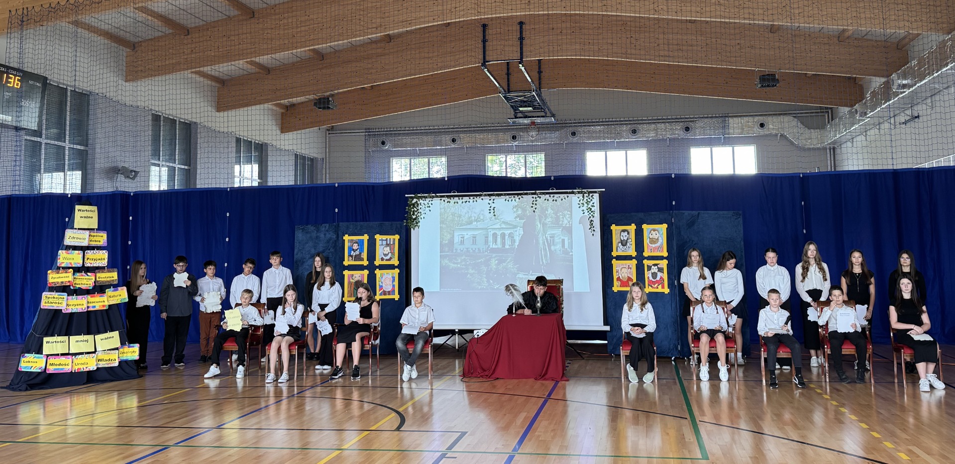 W bieżącym roku akcja Narodowego Czytania w naszej szkole odbyła się 16 września. Tym razem jej tematem była poezja Jana Kochanowskiego, renesansowego poety, którego nazwano „ojcem poezji polskiej”. Uczniowie klas V, VII i VIII, czytając fraszki, pieśni i treny Mistrza z Czarnolasu przekonywali, że wartości, które przywoływał on w swoich utworach są nam bliskie. A wiersze napisane przepiękną polszczyzną, pełne humoru, mądrych rad, zadumy nad światem, idei humanizmu, refleksji obywatelskiej i troski o Ojczyznę to niezwykła kronika myśli i obyczajów w dawnej Rzeczpospolitej, która łączy pokolenia i jest nadal aktualna. Prace plastyczne uczniów będące elementem dekoracji, psalm „Kleszczmy rękoma” zaśpiewany przez uczniów klasy VI, elementy tańca, muzyka, kostiumy nawiązujące do epoki renesansu, dopełniły prezentację utworów poetyckich i pozwoliły wszystkim uczestnikom spotkania poczuć nastrój epoki, w której żył Jan Kochanowski.