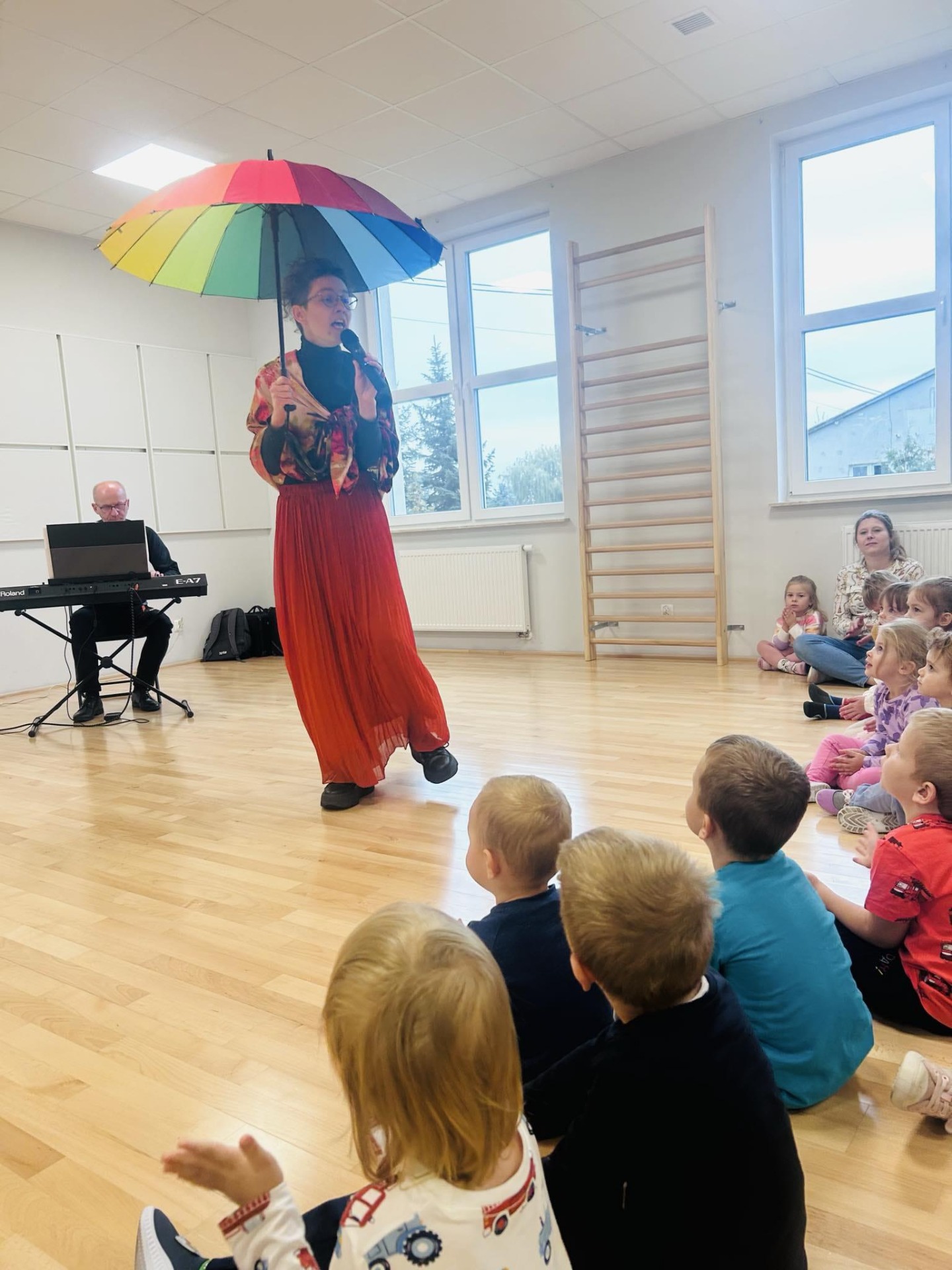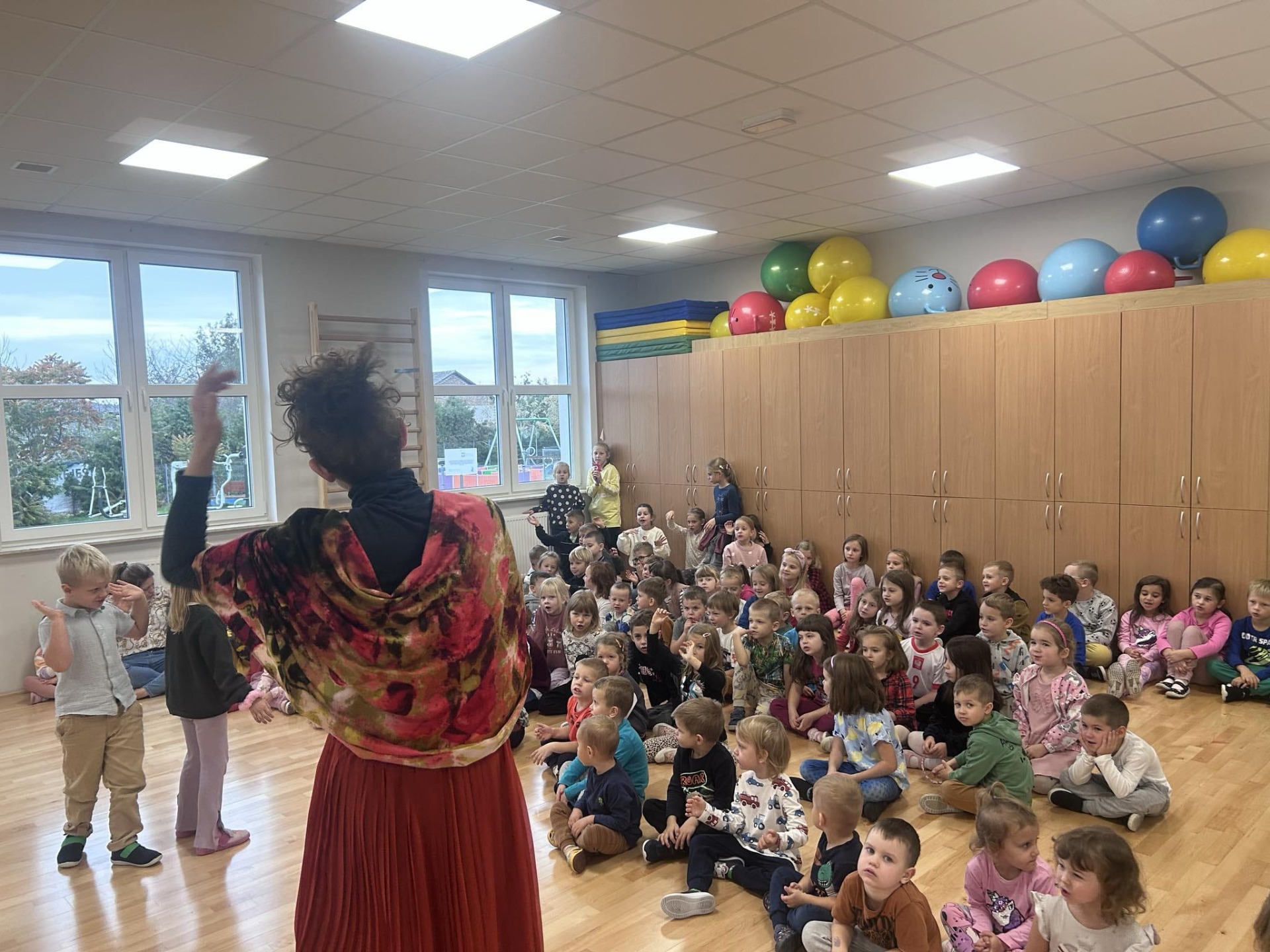 24 października gościliśmy muzyków i aktorów z Centrum Rozwoju Dziecka z koncertem ,,Jesienna historia”. Koncerty muzyczne mają na celu rozwijanie wyobraźni, wrażliwości i edukacji muzycznej dzieci. Przez aktywne słuchanie, śpiewanie, taniec i kontakt z instrumentami dzieci uczą się koncentracji, poprawiają zdolności poznawcze, rozwijają umiejętności społeczne.