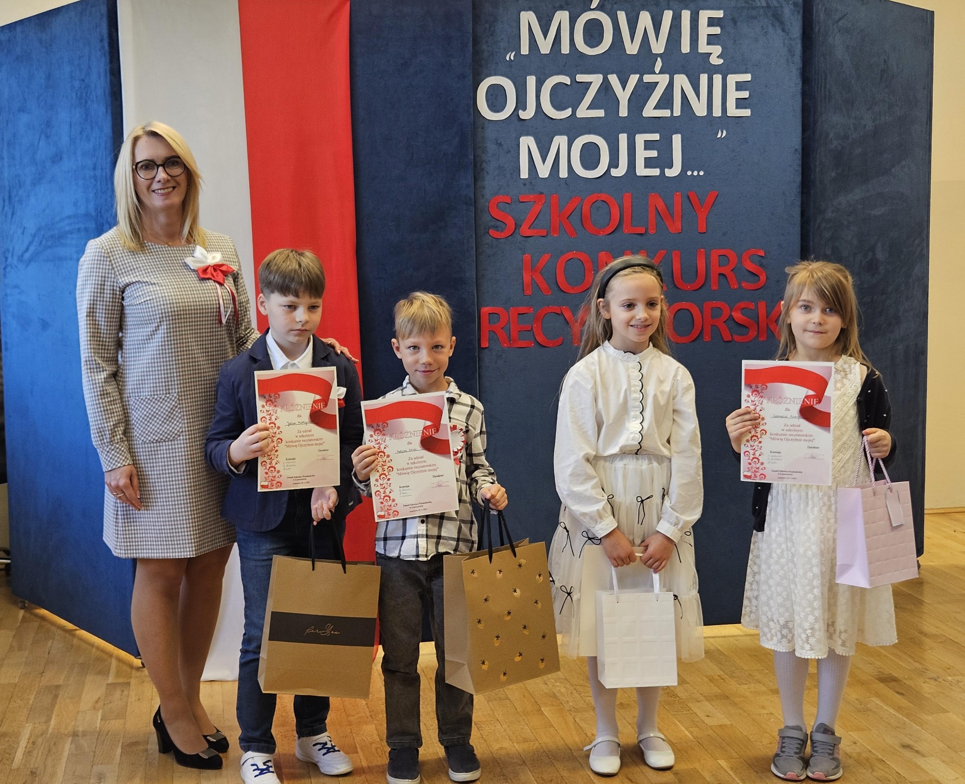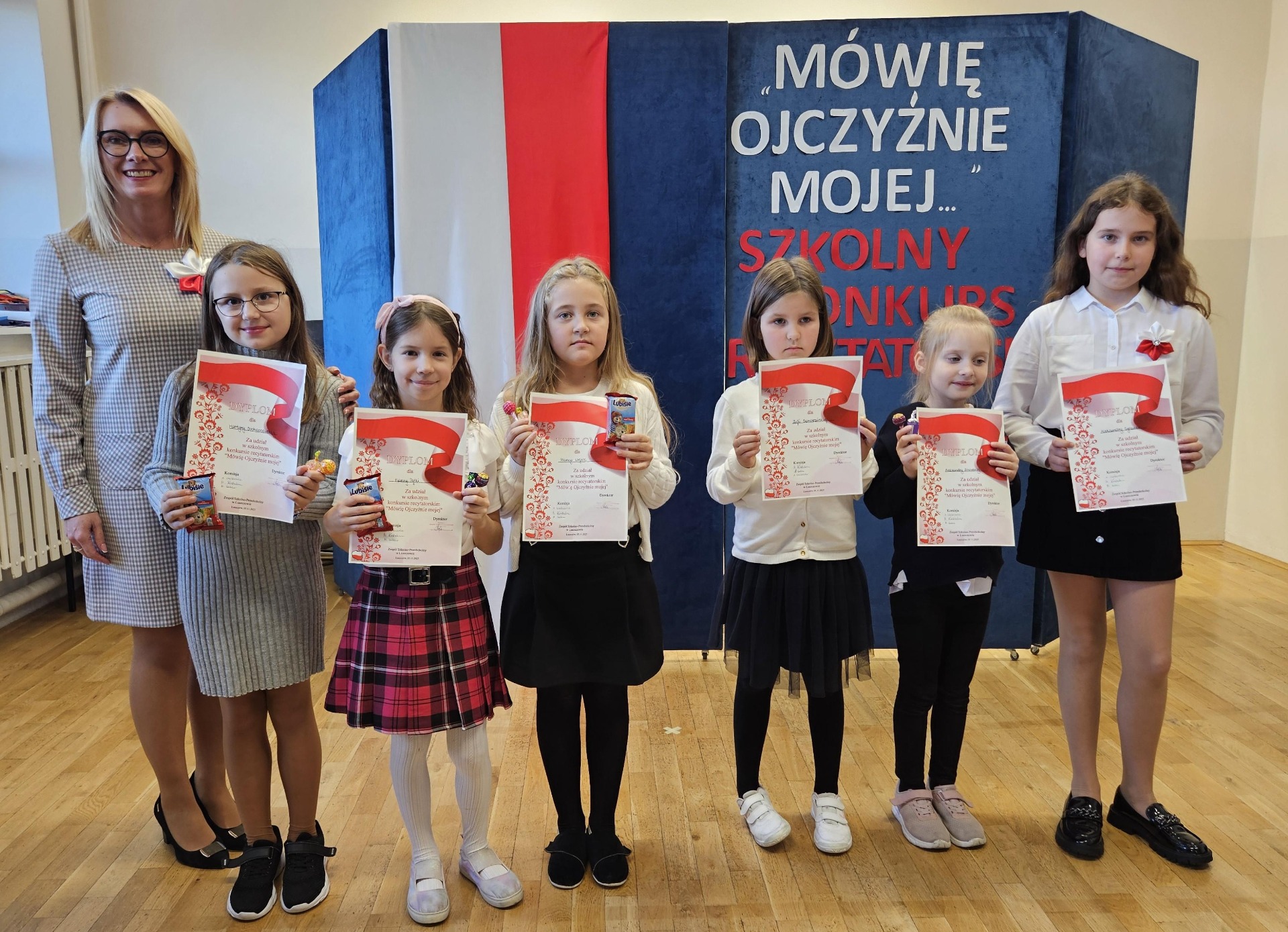 5 listopada 2025 uczniowie z klas 1-3 naszej szkoły, zaprezentowali swoje umiejętności krasomówcze w szkolnym konkursie recytatorskim „Mówię Ojczyźnie mojej…”. Młodzi oratorzy poprzez recytację poezji patriotycznej upamiętnili 107 rocznicę odzyskania niepodległości przez Polskę. W konkursie udział wzięło 15 uczniów.