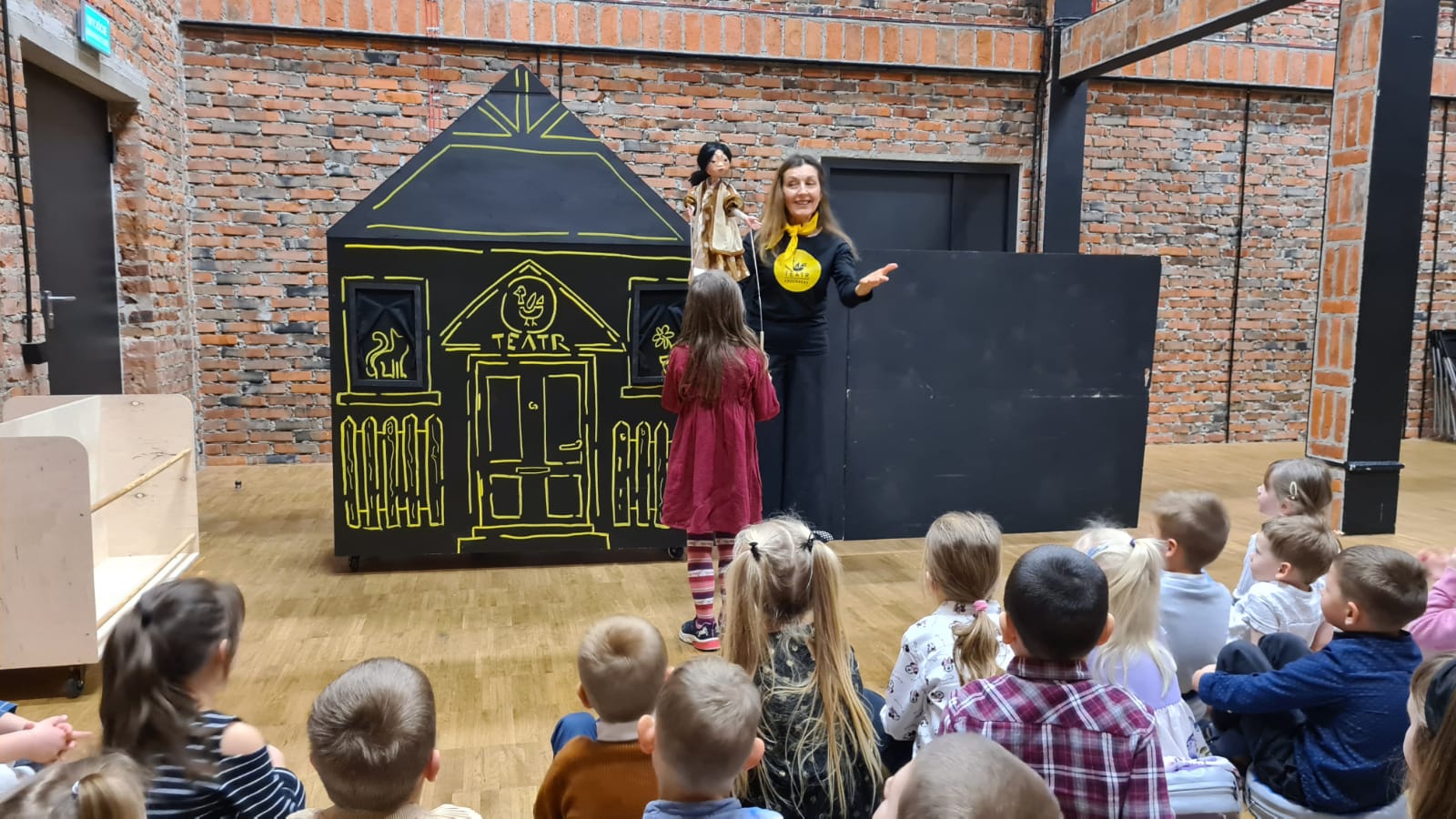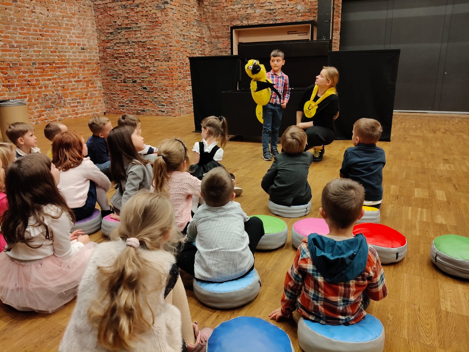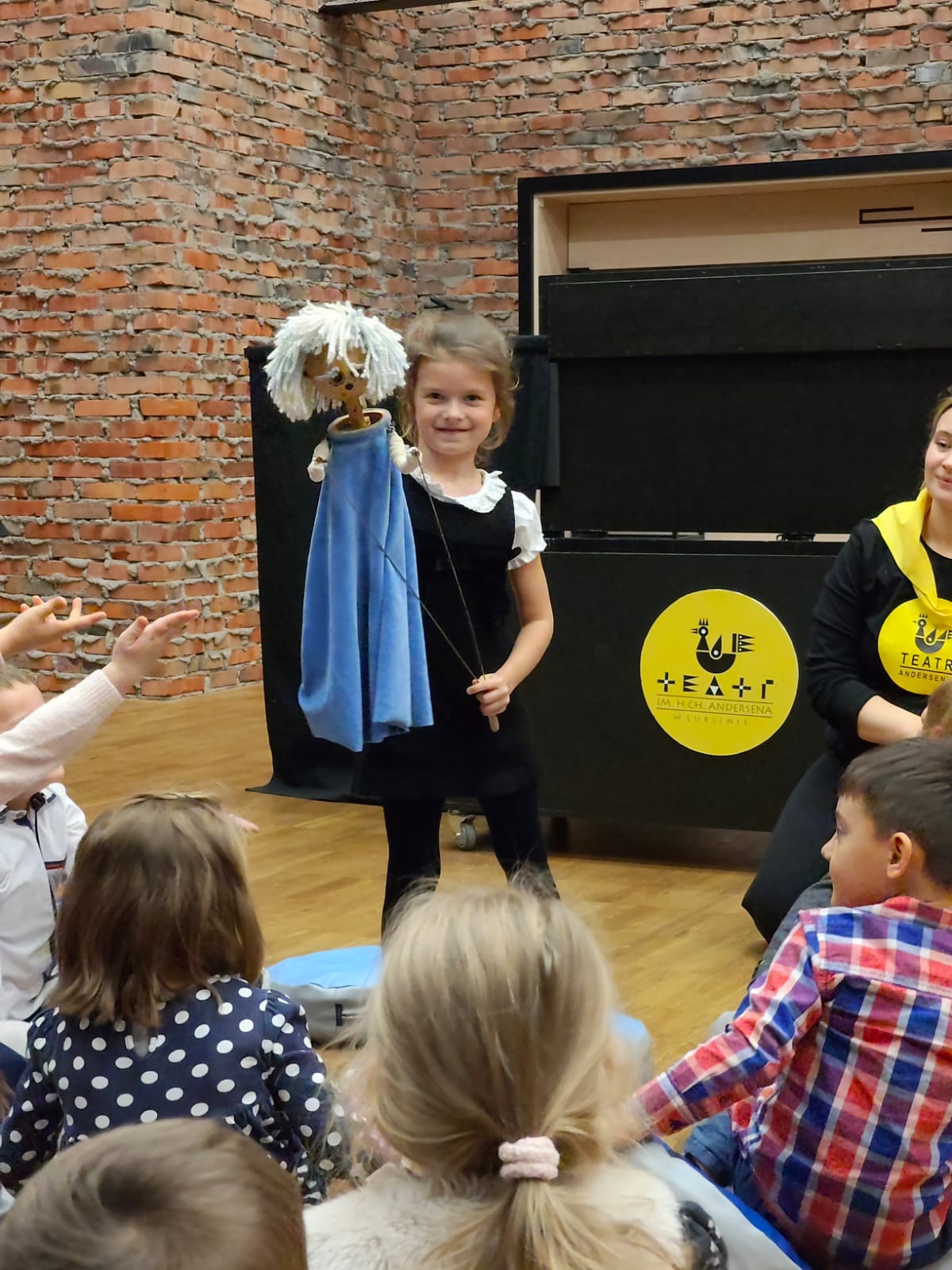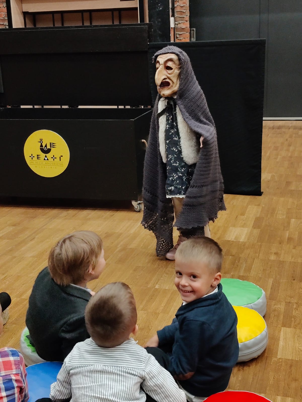 Przedszkolaki z grup: „Żyrafek”, „Kangurków” i „Lemurków” wybrały się 5 listopada do Teatru Lalki i Aktora im. H. Ch. Andersena w Lublinie na spektakl pt. ,,Słowik i Babka Natura”. Sztuka teatralna zawierała szereg wartości wychowawczych: dbałość o naturę i otoczenie, segregowanie śmieci, wartości rodzinne, problem nadużywania telefonów komórkowych, troska o najbliższych, przyjaźń ze zwierzętami. Wszyscy byli zachwyceni spektaklem. Po przedstawieniu dzieci uczestniczyły w warsztatach teatralnych, na których poznały różne rodzaje lalek teatralnych: kukiełki, pacynki, jawajki, marionetki, tintamareski oraz sposoby animowania tych lalek przez aktora. Miały także okazję same zabawić się w animatorów i ożywić lalki. Wizyta w teatrze dostarczyła młodym widzom mnóstwa wrażeń i przybliżyła im pracę aktora.