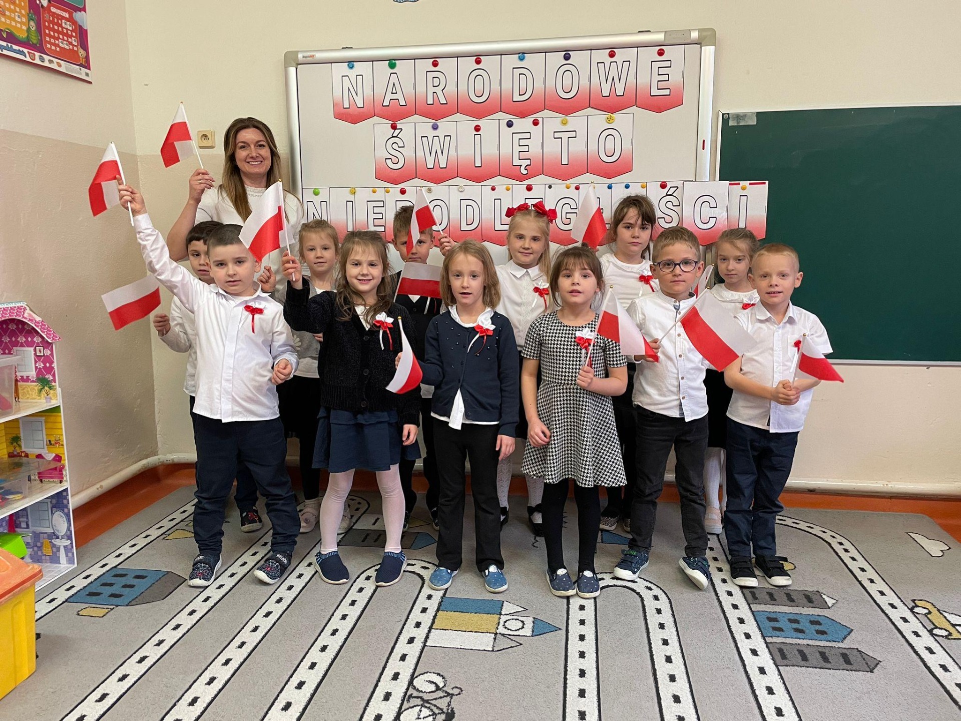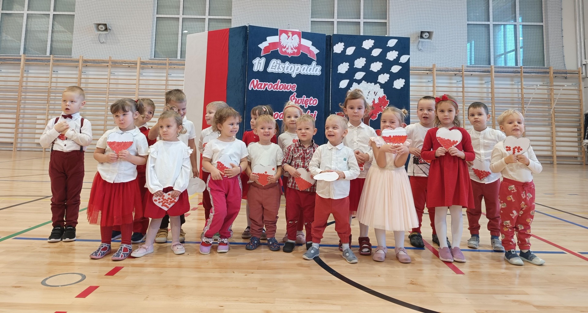 Z tej okazji dzieci z oddziałów przedszkolnych przygotowały uroczystość patriotyczną, podczas której najmłodsi zaprezentowali piosenki o Polsce, wolności i symbolach narodowych oraz wiersz Władysława Bełzy pt. „Katechizm polskiego dziecka”.