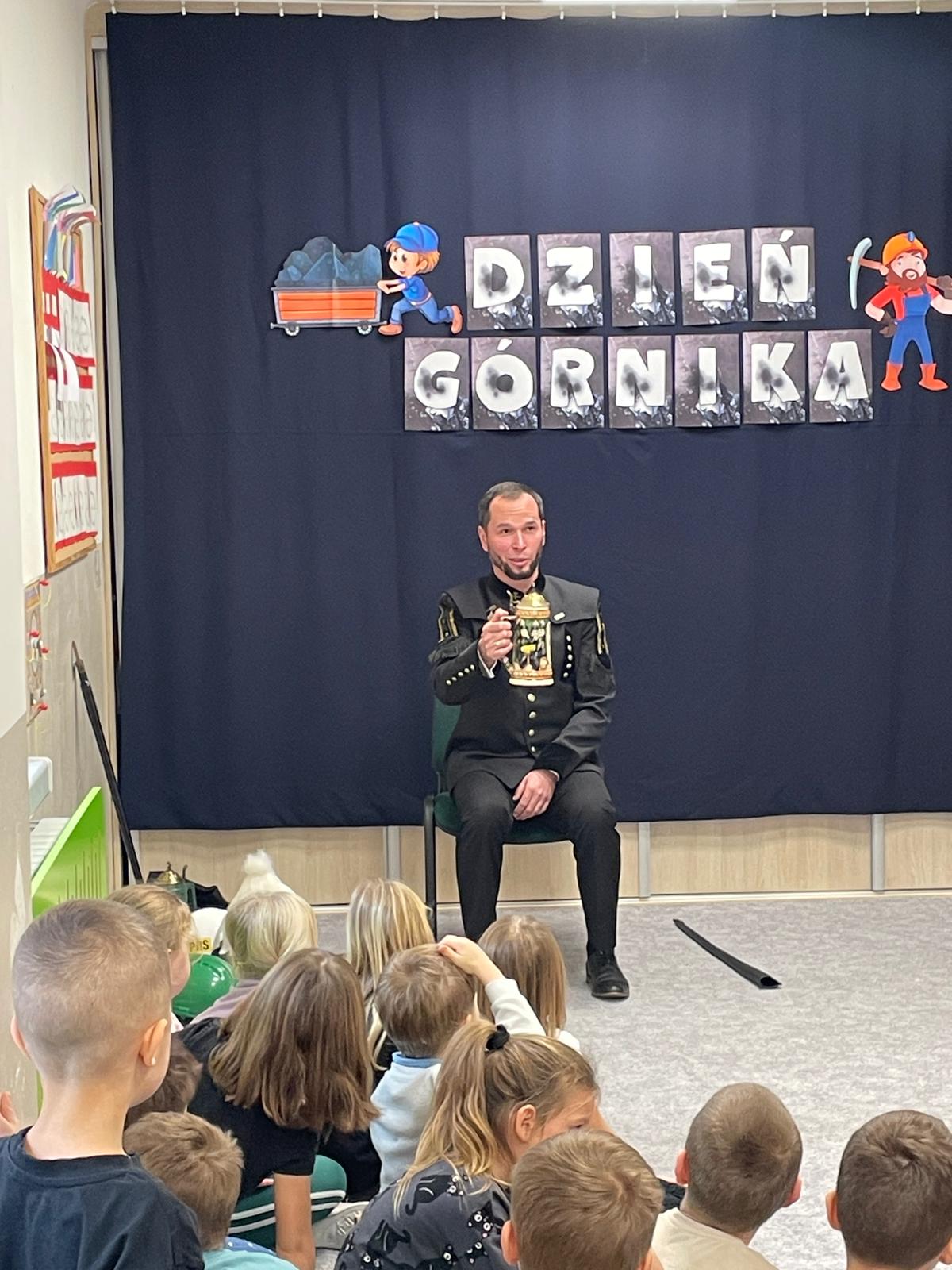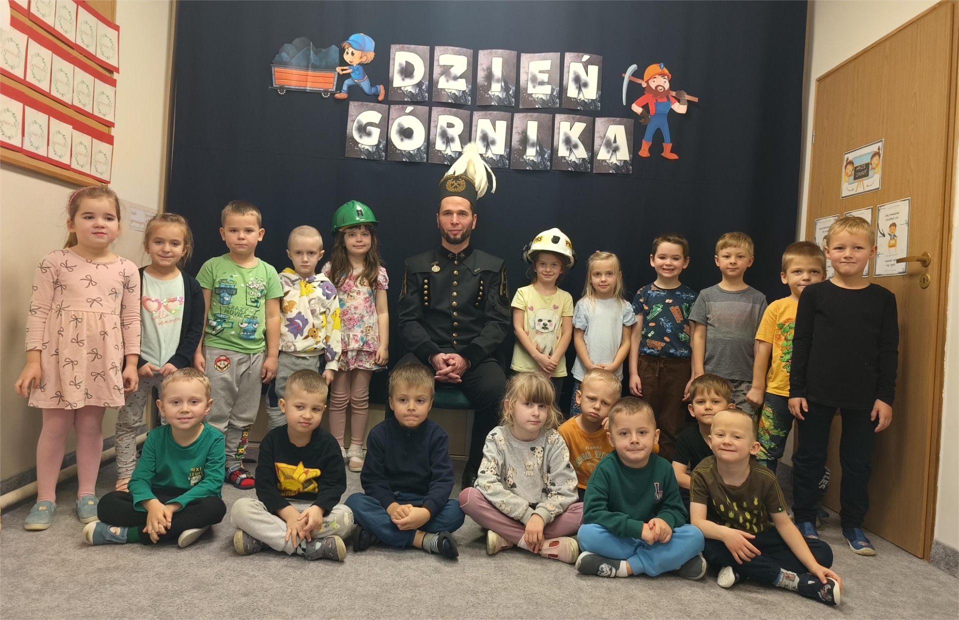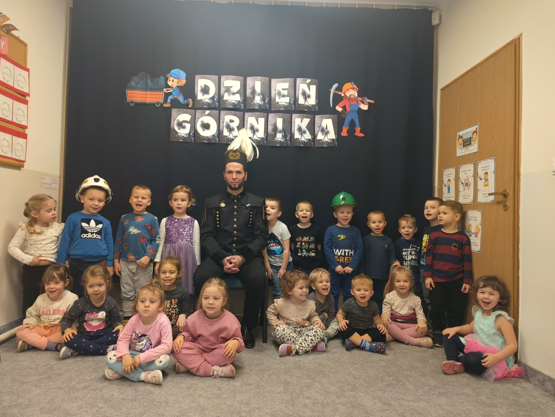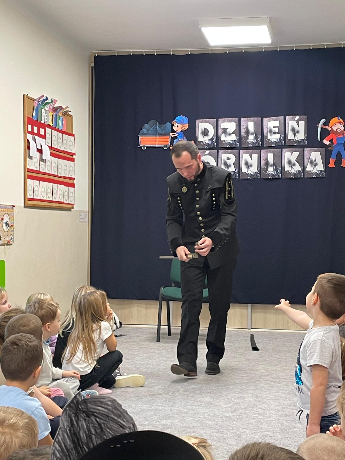 4 grudnia nasze przedszkole odwiedził wyjątkowy gość- górnik w galowym stroju Pan Grzegorz Listoś. Dzieci miały okazję poznać tajniki pracy pod ziemią, obejrzeć górniczy mundur z bliska oraz dowiedzieć się, co oznaczają kolory pióropuszy na czapce górniczejj. Największą atrakcją okazały się rekwizyty, które górnik przyniósł ze sobą. Przedszkolaki słuchały z ogromnym zainteresowaniem, zadawały mnóstwo pytań i dowiedziały się, jak ważna i trudna jest praca górnika. Na zakończenie spotkania wszytskie dzieci złozyły naszemu gościowi życzenia z okazji Barbórki, wręczyły prezent oraz podziękowały za ciekawą lekcję.