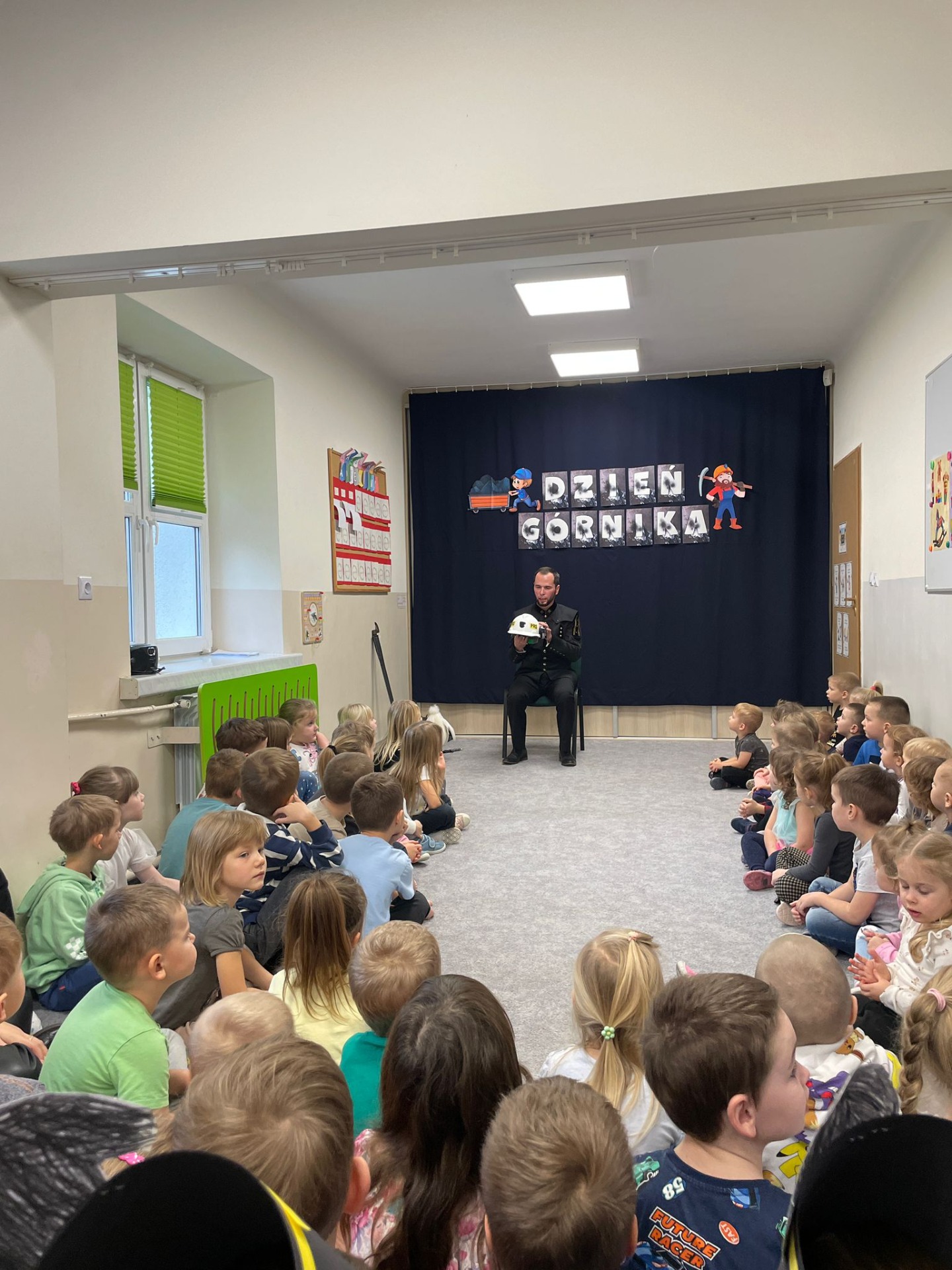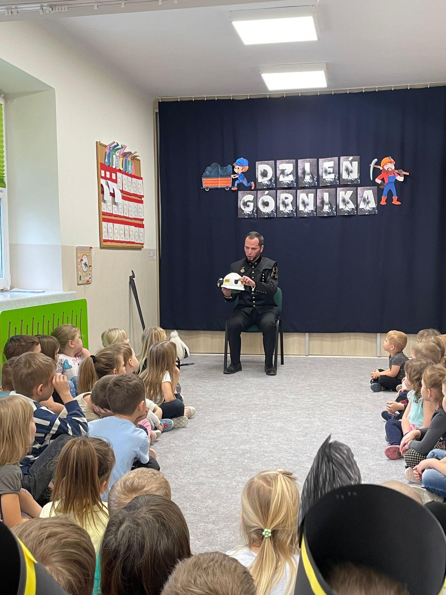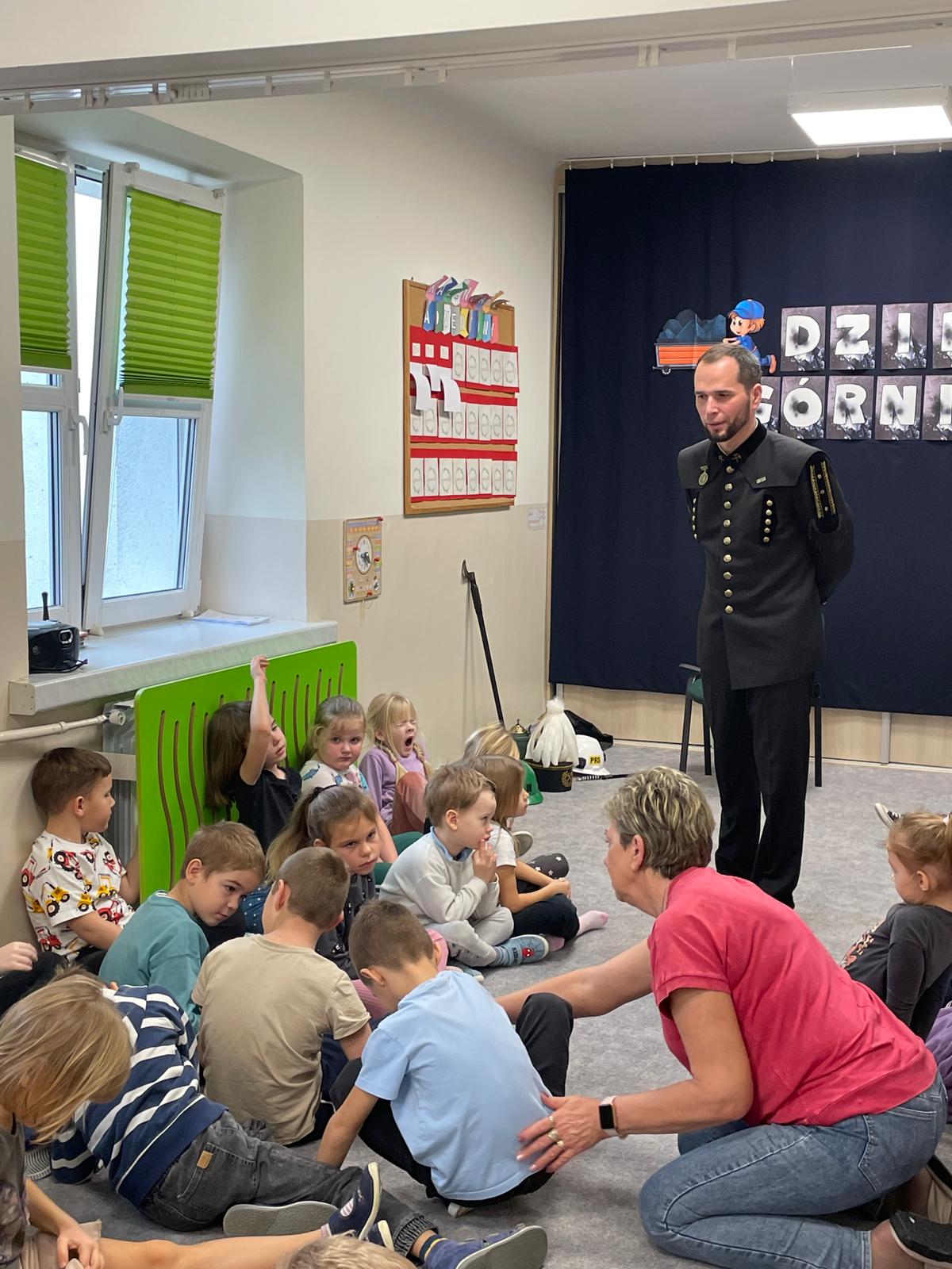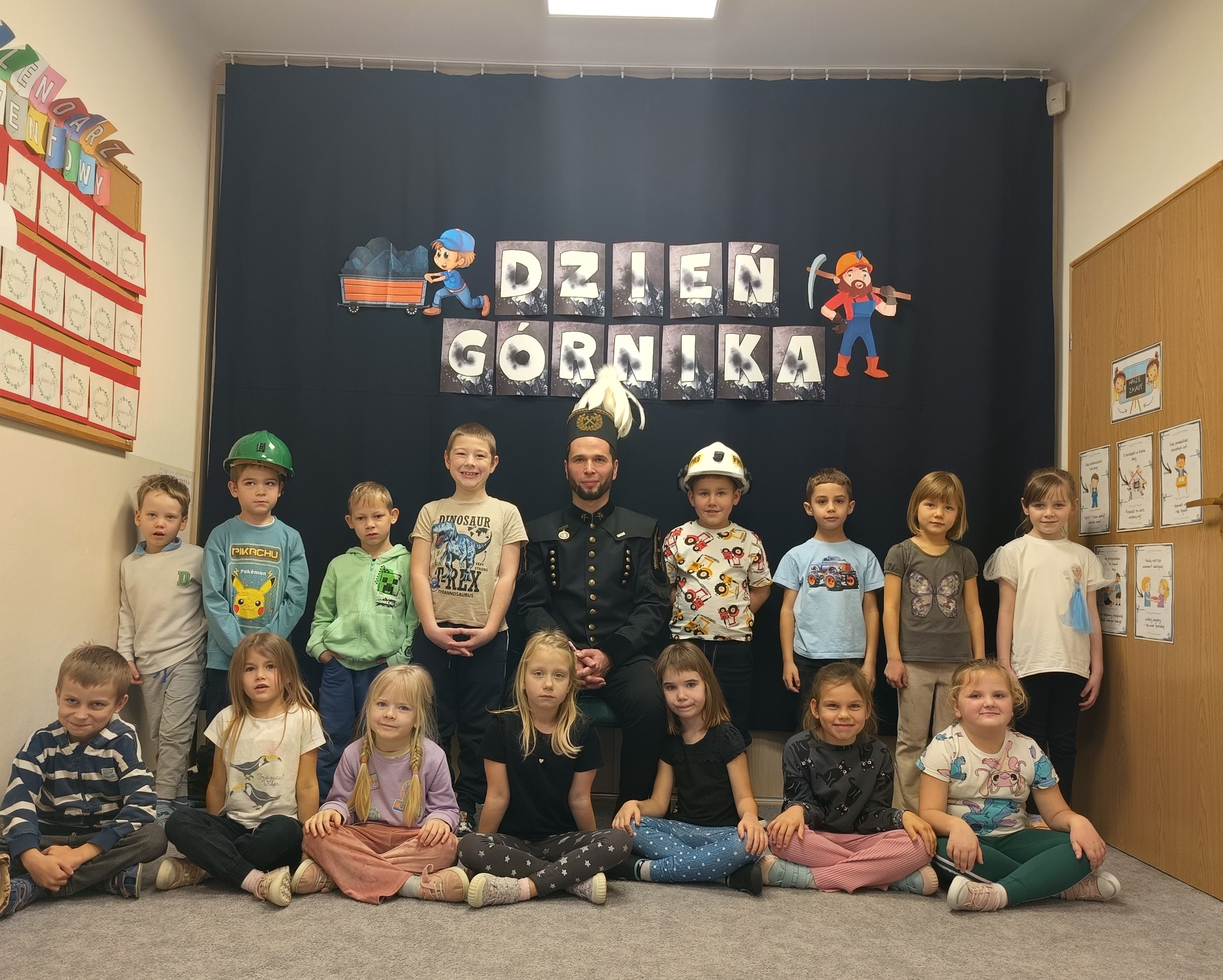 4 grudnia nasze przedszkole odwiedził wyjątkowy gość- górnik w galowym stroju Pan Grzegorz Listoś. Dzieci miały okazję poznać tajniki pracy pod ziemią, obejrzeć górniczy mundur z bliska oraz dowiedzieć się, co oznaczają kolory pióropuszy na czapce górniczejj. Największą atrakcją okazały się rekwizyty, które górnik przyniósł ze sobą. Przedszkolaki słuchały z ogromnym zainteresowaniem, zadawały mnóstwo pytań i dowiedziały się, jak ważna i trudna jest praca górnika. Na zakończenie spotkania wszytskie dzieci złozyły naszemu gościowi życzenia z okazji Barbórki, wręczyły prezent oraz podziękowały za ciekawą lekcję.
