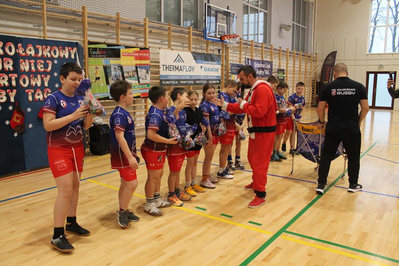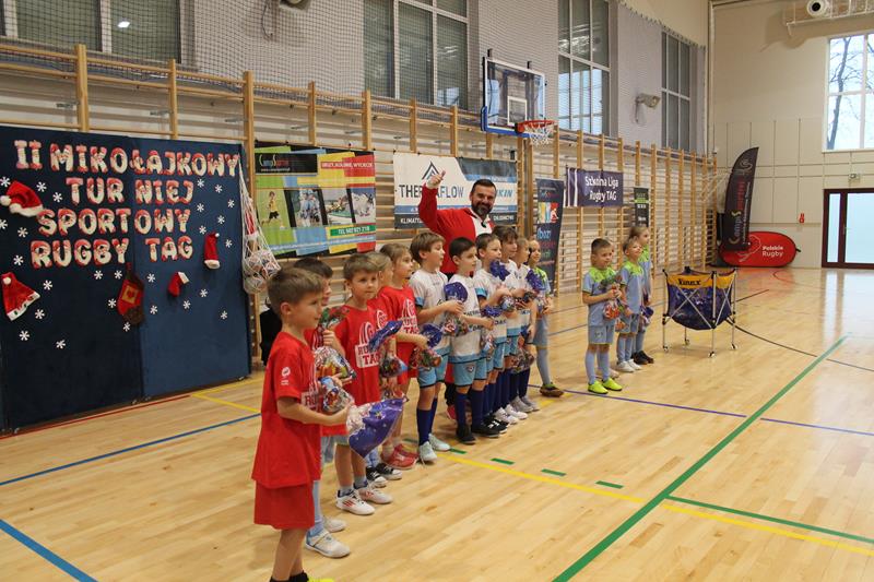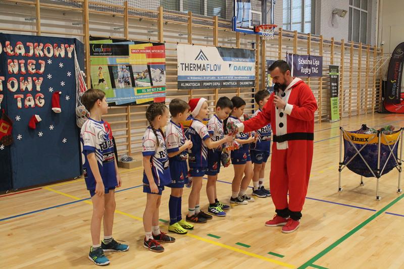 Jak przystało na Mikołajkowy Turniej popularyzujący rugby Tag był on prowadzony w formule „for fun” bez klasyfikacji miejsc, mimo to rywalizacja była bardzo zacięta i emocjonująca, ale co ważne zawsze przebiegała w sportowej atmosferze z uśmiechami na twarzach. W tym dniu wszyscy byli wygranymi i każdy z uczestników otrzymał mikołajowe paczki ze słodkościami oraz pyszne pączki od Piekarnia Adampol Bułka Kromka, a o poczęstunek dla wszystkich uczestników zadbali rodzice Farmerów.