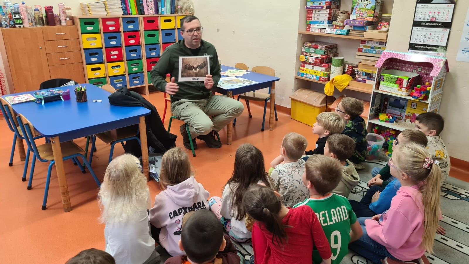 01 grudnia grupy przedszkolne odwiedził leśnik pracownik Zespołu Lubelskich Parków Krajobrazowych. Pan Marek T. opowiadał o pięknie i tajemnicach lasu. Podczas wizyty dzieci miały okazję dowiedzieć się, jakie zwierzęta zamieszkują las, jakie drzewa rosną w naszych lasach oraz jak ważna jest ochrona przyrody. Leśnik pokazał nam różne zdjęcia i opowiadał ciekawe historie o zwierzętach, takich jak: sarny, zające, ptaki i wiele innych. To była świetna okazja, aby dzieci mogły bliżej poznać naturę i nauczyć się, jak dbać o nasze polskie lasy. Dziękujemy leśnikowi za wspaniałą lekcję przyrody.