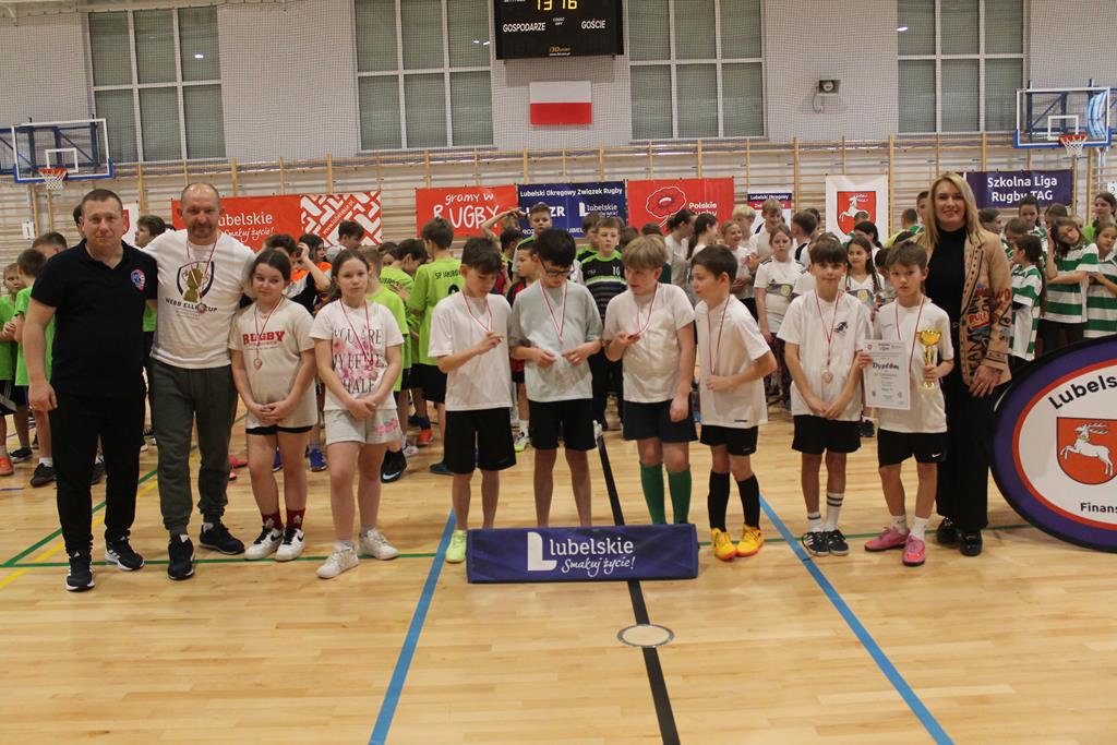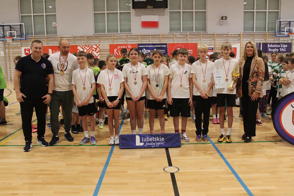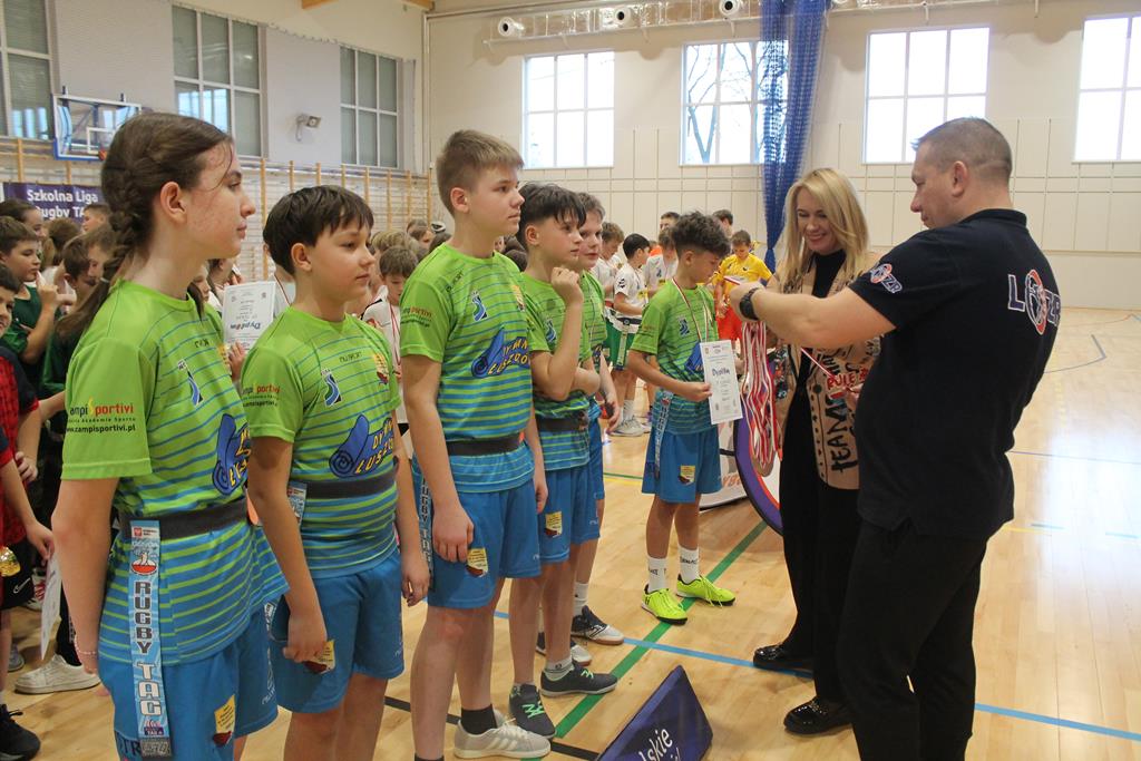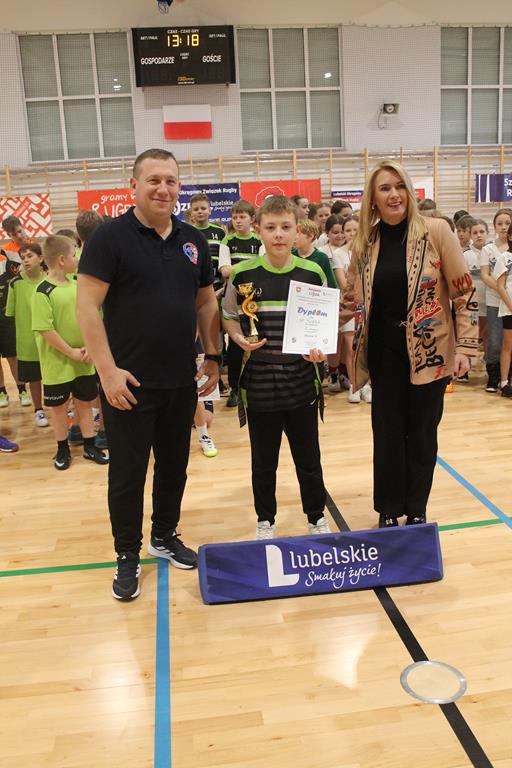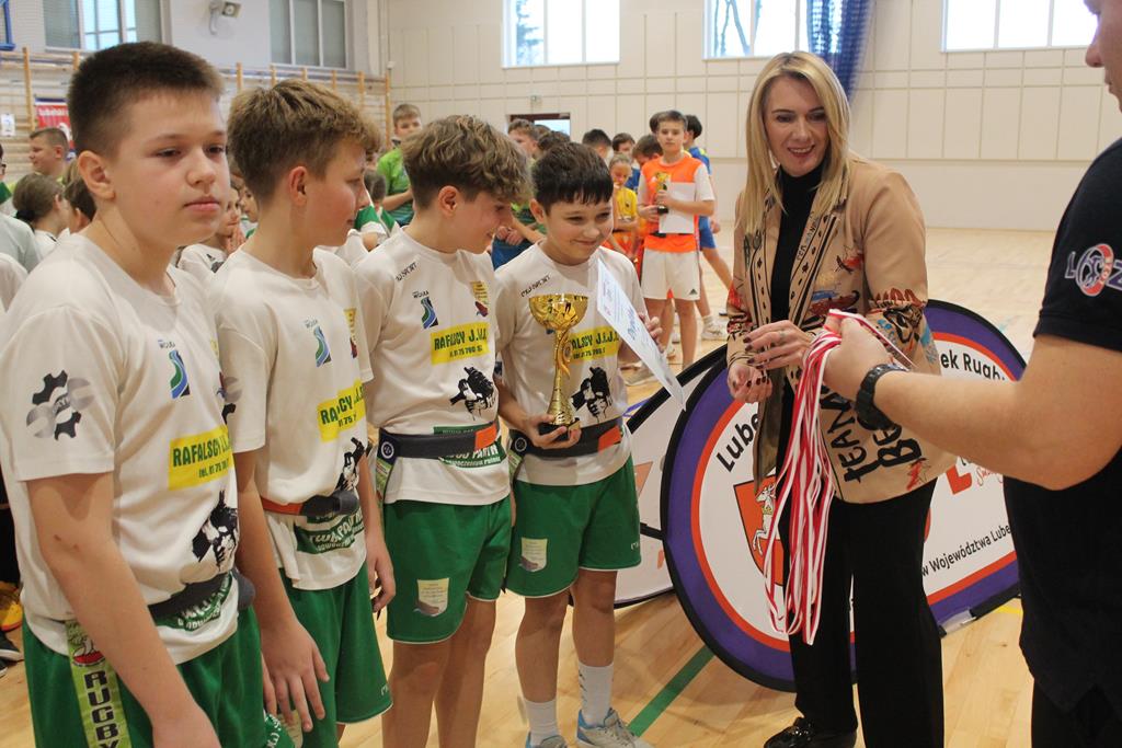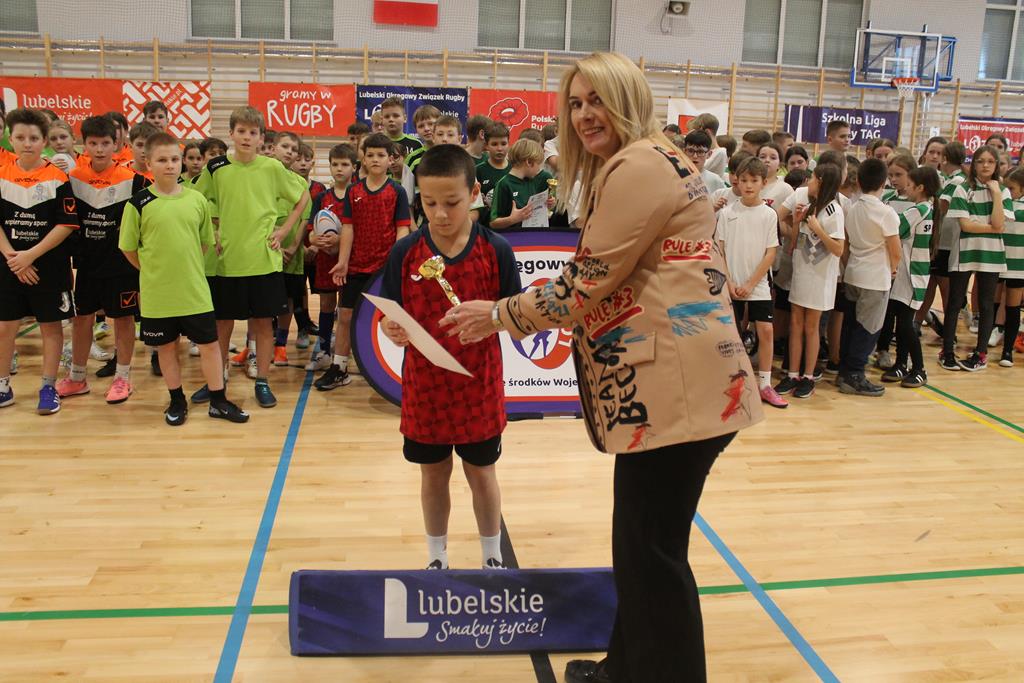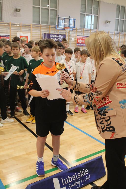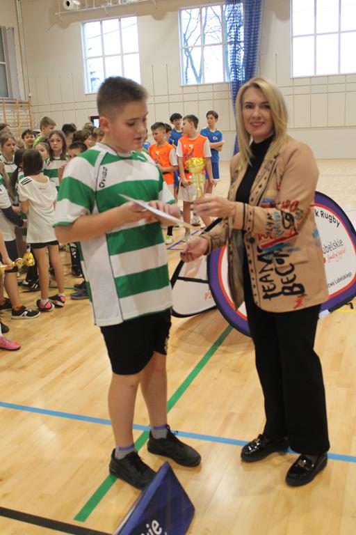 Na koniec wszystkie drużyny otrzymały puchary, dyplomy i za zajęte miejsca medale, które wręczała dyrektor Zespołu Szkolno – Przedszkolnego w Łuszczowie Drugim Pani Magdalena Krystjańczuk oraz prezes Lubelskiego Okręgowego Związku Rugby Sebastian Berestek.