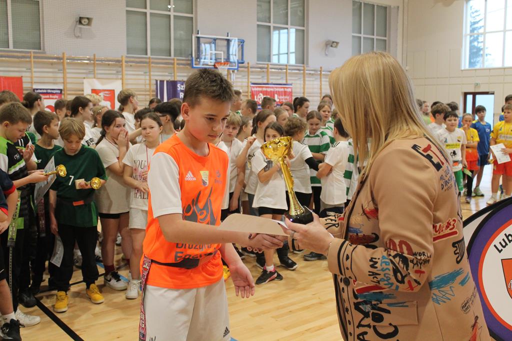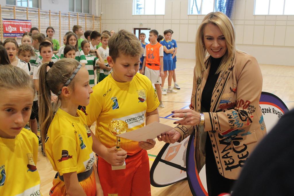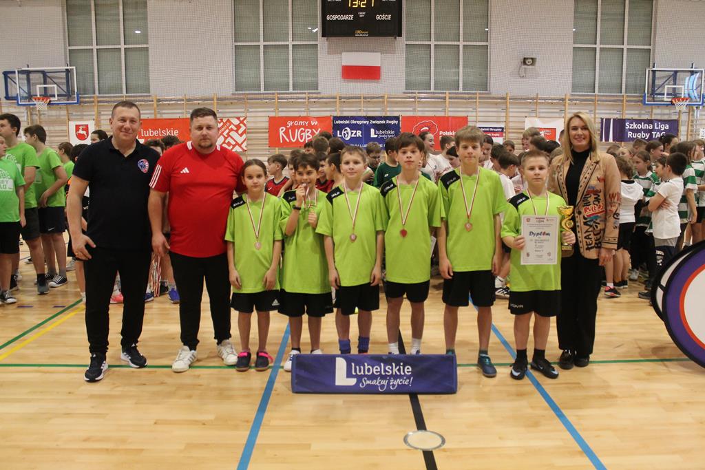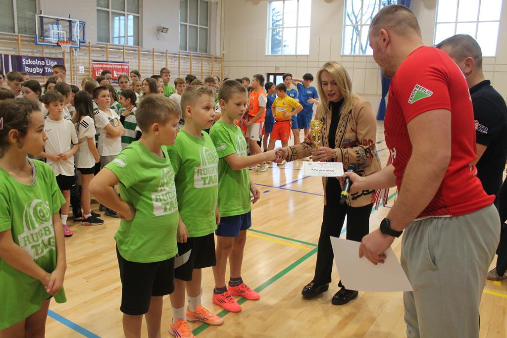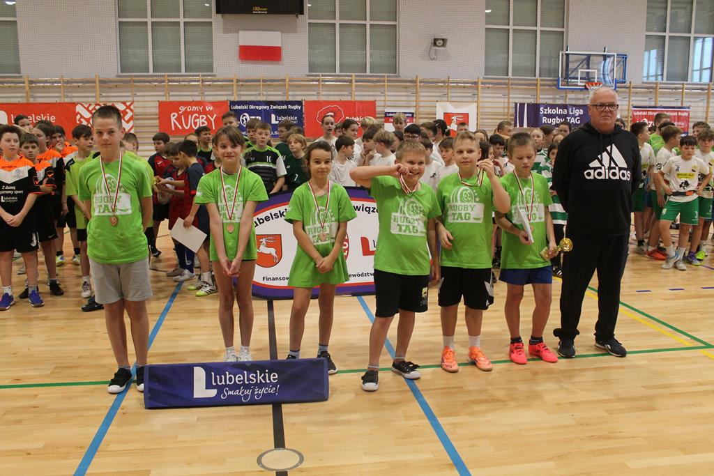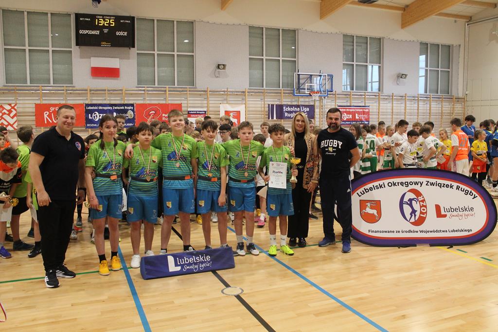 Na koniec wszystkie drużyny otrzymały puchary, dyplomy i za zajęte miejsca medale, które wręczała dyrektor Zespołu Szkolno – Przedszkolnego w Łuszczowie Drugim Pani Magdalena Krystjańczuk oraz prezes Lubelskiego Okręgowego Związku Rugby Sebastian Berestek.