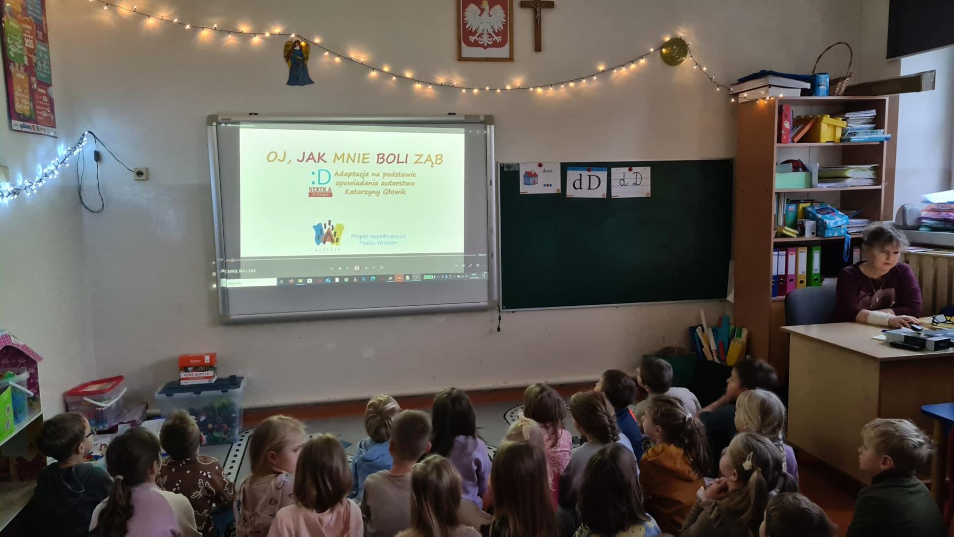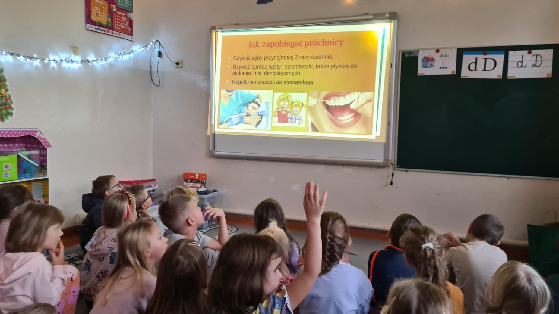 12 grudnia, 6-latki z grup „Kangurków” i „Lemurków” odwiedziła pani pielęgniarka Ewa Rycerz, która przygotowała pogadankę „Jak dbać o zęby?”. Dzieci obejrzały również film o królestwie Zębolandii. Dowiedziały się, ile człowiek ma zębów mlecznych i stałych, jakie produkty szkodzą naszym zębom i jak należy czyścić zęby. Na pewno to spotkanie pomoże przedszkolakom we właściwym dbaniu o swoje ząbki.